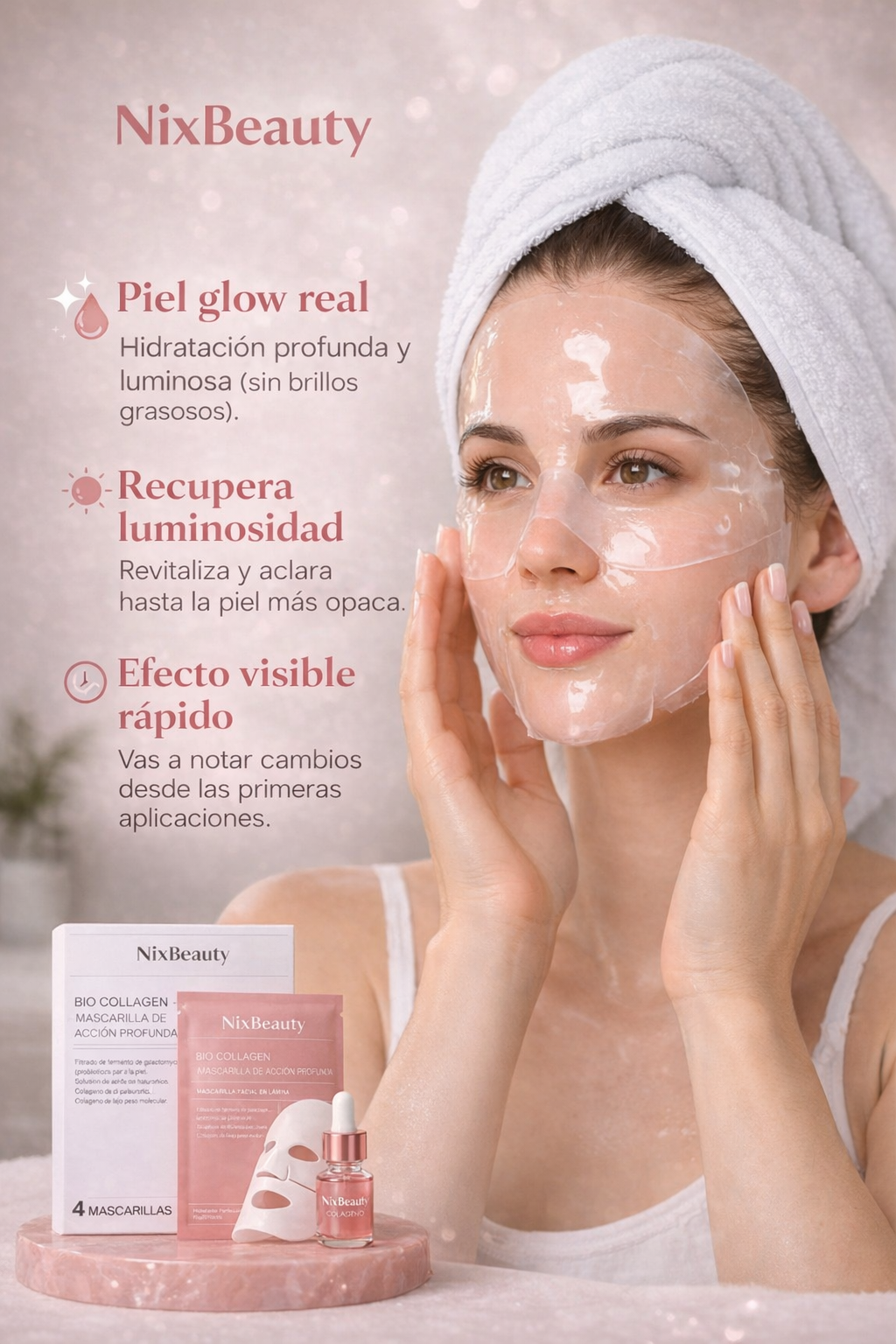 Camila, 32 — Buenos Aires“Sentía que mi piel envejecía rápido… me daba inseguridad. Ahora la noto más firme, suave y con glow natural 💖”