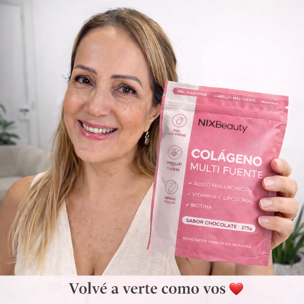 Con uso continuo la piel mantiene la firmeza, el cabello y las uñas están notablemente más fuertes. Te reconocés en el espejo.